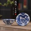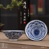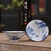 1 Stück chinesische Teetasse aus blauem und weißem Porzellan, exquisite handbemalte Teeschale mit Vogelmotiv, Bambushut, Meister-Meditationstasse, Teeservice, 55 ml