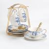 Blumen-Teekannen-Sets, Kannenkerze, Beheizte Glas-Teekanne und Teetassen-Set, Blau-Weiß-Porzellan, Kaffeetasse und Untertasse, Schönes Geschenk