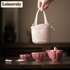 Emaillefarbenes Blumen-Reise-Teeset-Kit Handgefertigt 1 Kanne 2 Tassen Teekannen-Werkzeuge Camping Reise Tragbare Handtasche Teezeremonie Geschenk