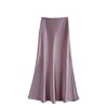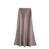Taillenhoher schlanker Fishtail-Rock Grau Temperamentvoll Elegant Satinrock Damen Sommer Elastischer Bund Midilange Röcke für Damen