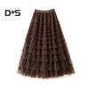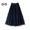 Damen-Kuchenrock, einfarbig, mittelhoher Taillen-langer Rock mit elastischem Bund, Netzsaum, A-Linien-Maxirock für den Alltag