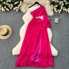 Sexy Cut-out, schräger Halsausschnitt, trägerlos, geteilte Taille, langes Urlaubskleid