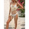 Damen Pailletten Spleißen Reine Hand Haken Slip Kleid Strand Urlaub Lange Fransen Bikini Smock
