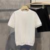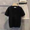 Herren Strick T-Shirt Kurzarm Schwergewicht Sommer Slim Fit Lässig Gestreiftes T-Shirt Strickwaren Ärmel Koreanischer Trend Hochelastisch