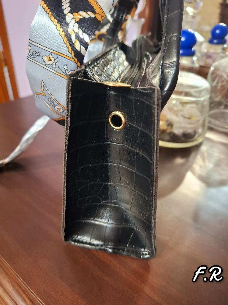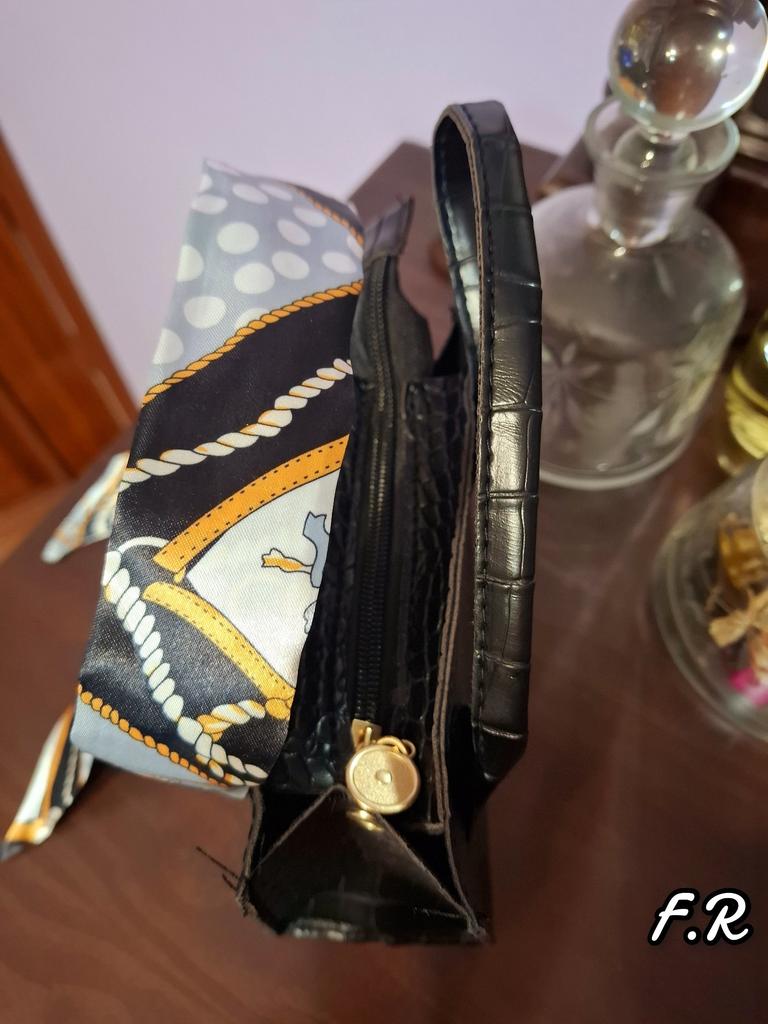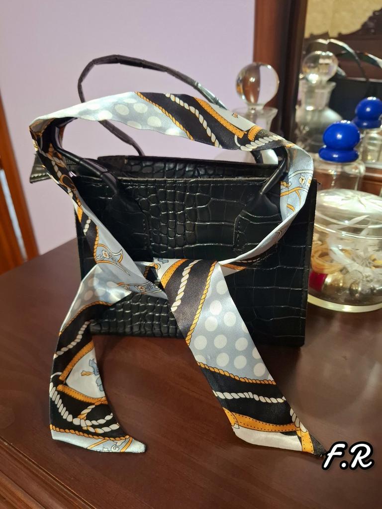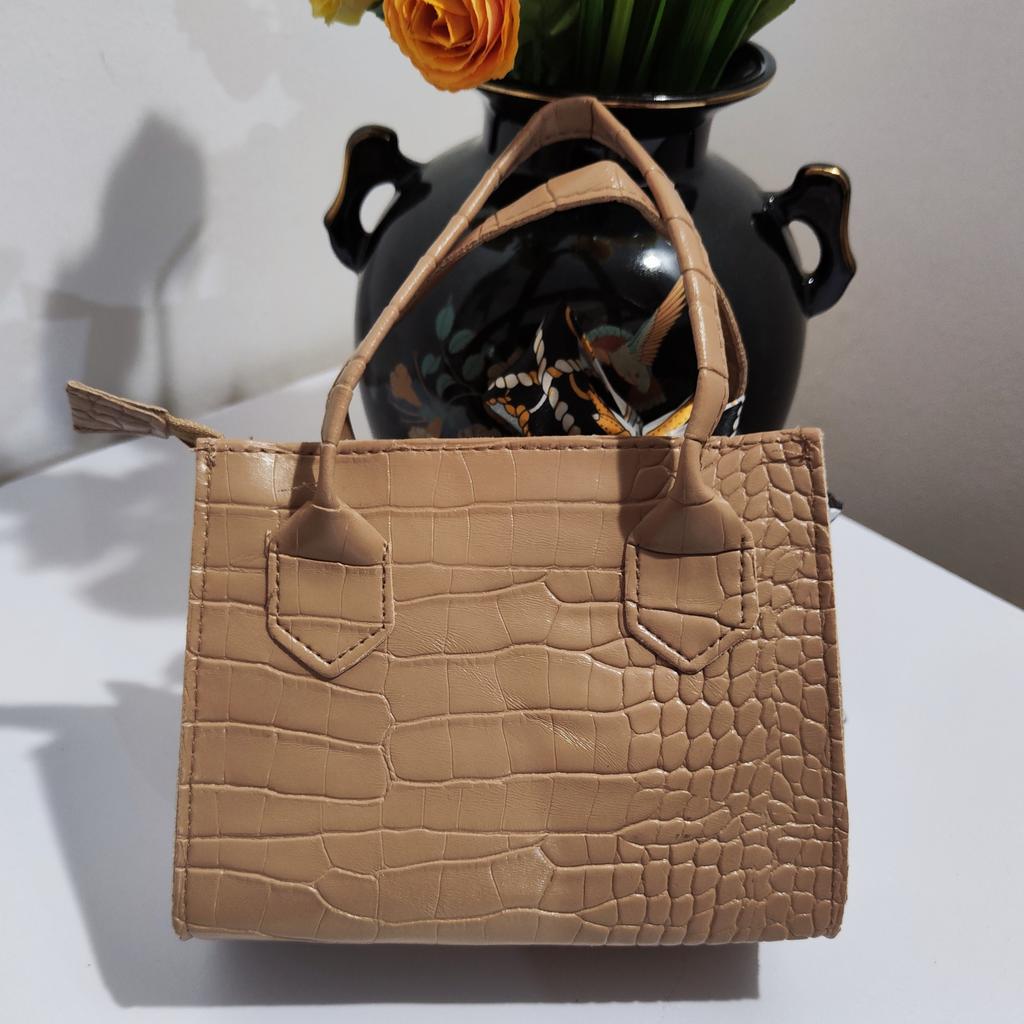 Diese stilvolle Umhängetasche im Tote-Stil zeichnet sich durch ein elegantes Retro-Design aus. Die Außenseite besteht aus einem hochwertigen Strukturstoff mit geprägtem Krokodilmuster, das ihm ein luxuriöses und hochwertiges Aussehen verleiht.. Es ist in einem sanften Beigeton erhältlich (auch in weiß, rosa und schwarz erhältlich), strahlt ein Gefühl von Raffinesse aus. Ein farbenfroher Seidenschal ist kunstvoll um den Griff gebunden und verleiht ihm einen Hauch von Charme und einen Farbtupfer. Die Tasche hat eine strukturierte Form mit klaren Linien und einem goldfarbenen Reißverschluss für ein edles Finish.
