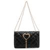 Die Kombination aus dem gesteppten Muster, dem herzförmigen Metallaccessoire und dem verstellbaren Kettenriemen macht diese Tasche sowohl elegant als auch praktisch und spricht modebewusste Konsumenten an.