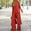 Modische, lässige und elegante dreiteilige Sets für Damen, bequem, einfarbig, V-Ausschnitt, Sling-Oberteile, weite Hosen und lange Strickjacke, Pendleranzüge