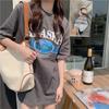 Kurzarm-T-Shirts aus reiner Baumwolle für Damen 2025 Sommer lässiges übergroßes T-Shirt Harajuku Buchstabendruck grau Y2k Tops Hip Hop Streetwear