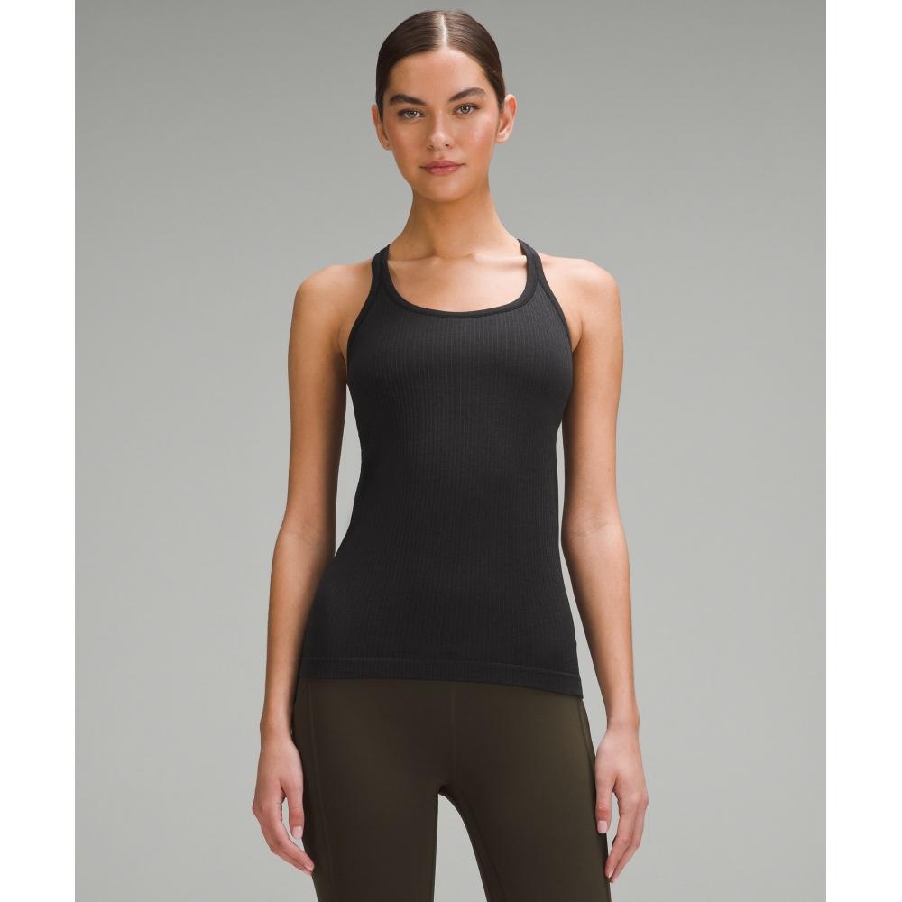 This yoga tank features seamless construction for a smooth fit and built-in support designed for B/C cups, offering seamless support.