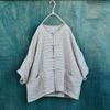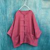 Johnature Women Shirts Chinese Style Button Tops O-Neck Short Sleeve Summer Blouses Vintage Pockets Shirts