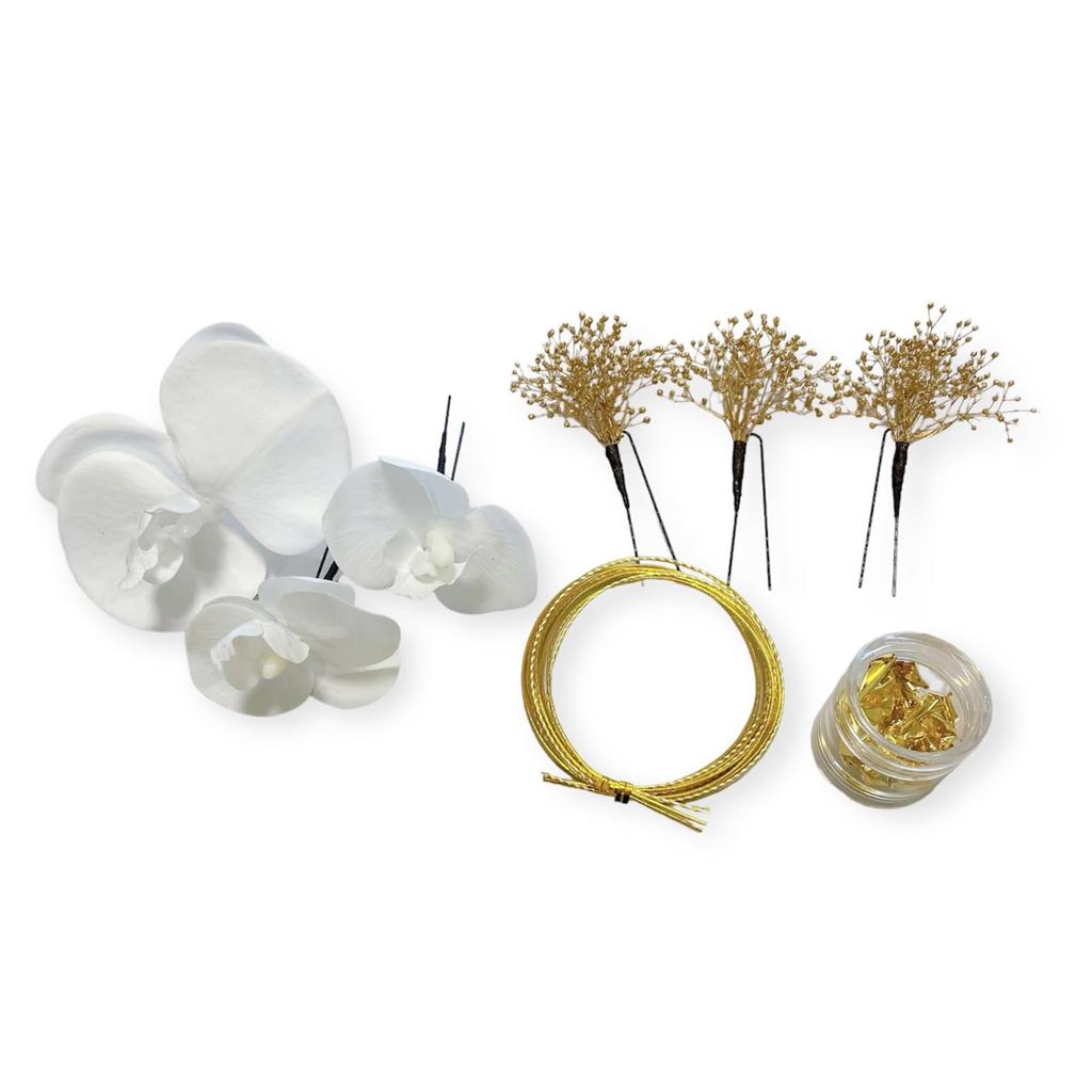 Phalaenopsis Haarschmuck Gold Gypsophila Mizuhiki Blattgold Zeremonie zur Volljährigkeit Abschlussfeier Kopfschmuck Hochzeit Kimono Furisode Hakama