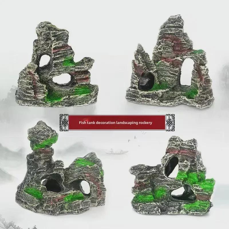 Steingarten-Dekoration aus Kunstharz mit Kiefer, Aquarium-Ornament, Landschaftsbau für Aquarien, Wassergras-Simulation, Steinversteck