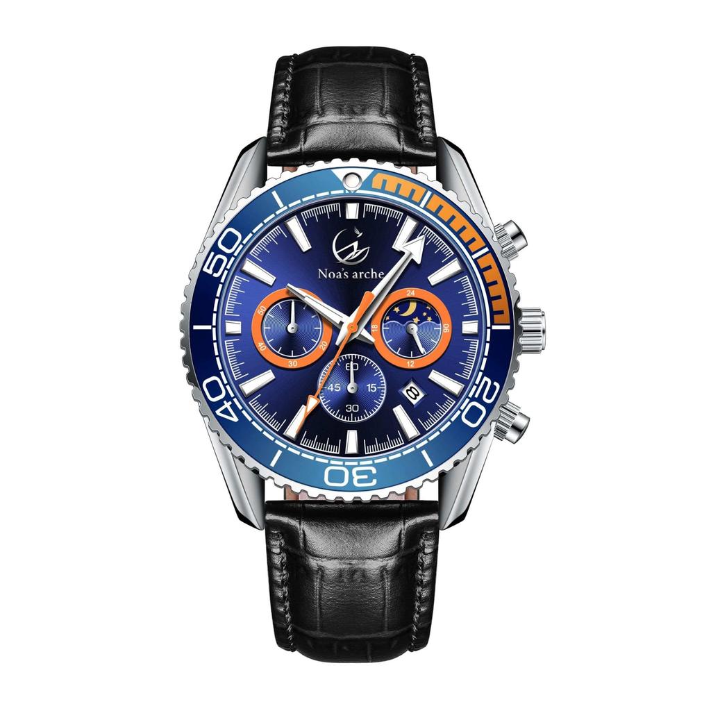 arche Business Stainless Commemorative Leather Band Noa's Men's Watch, Quartz, Steel, Easy-to-Read Dial, Luminous, Waterproof, Men's Watch, Gift,