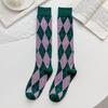 Damen Klassische Schwarz-Weiß Rautenmuster Socken - Lang, Retro Britischer Stil für Frühling & Herbst