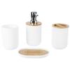 4-teiliges Badezimmer-Accessoire-Set Bambus Wasserdicht Langlebig Geschenk Zahnbürstenbecher für Zuhause Hotel Grau