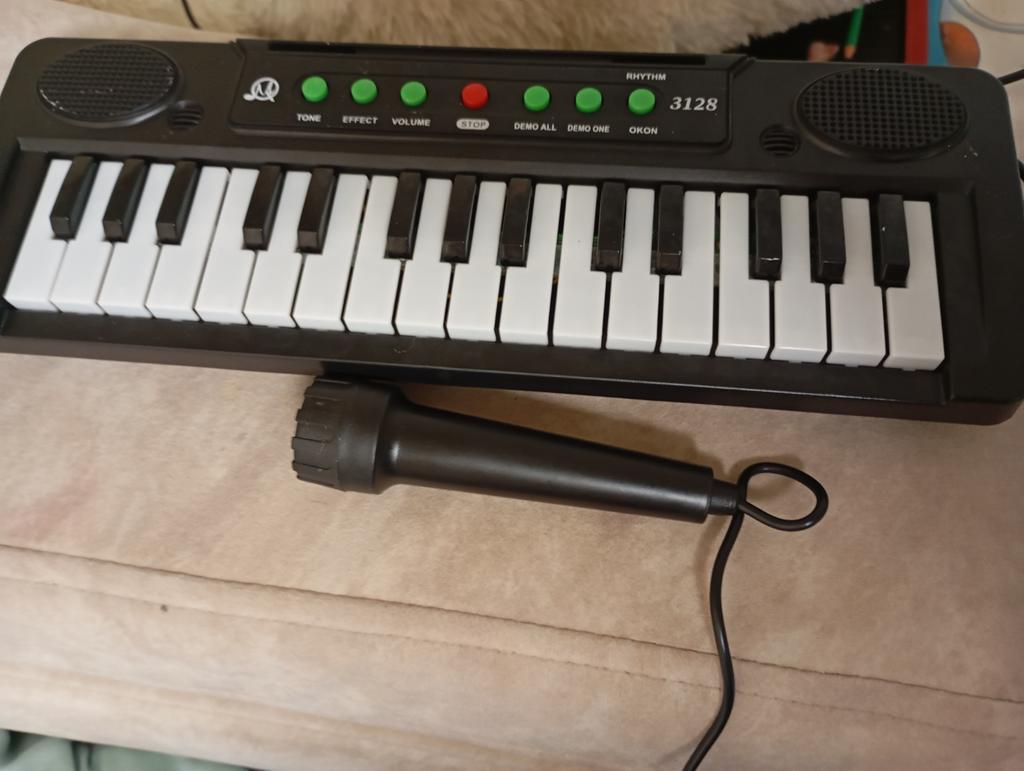 Kleine Tastatur, dachte, es gäbe irgendwelche Melodien, Mikrofon-Imitation oder wir haben ein nicht funktionierendes bekommen
