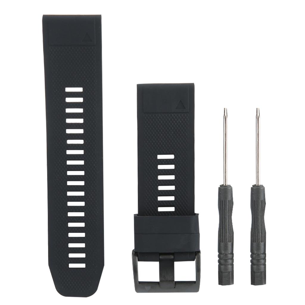 26mm Uhrenarmband Silikon Dornschließe Wasserdichtes Uhrenarmband Passend für Garmin fenix 5Xplus (Schwarz)