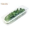 Wir präsentieren die Box, eine praktische und platzsparende Option für Ihren Kühlschrank. Seine flache, längliche Form eignet sich perfekt für die effiziente Aufbewahrung ganzer Frühlingszwiebeln und Koriander. Dieses vielseitige Werkzeug ist ideal, um Ihre Zutaten geordnet aufzubewahren, ohne viel Platz zu beanspruchen.