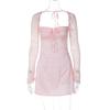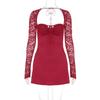 Spitze Langarm Sexy Rückenfreies Kleid Frühling Damen Slim-fit Brust Tasche Gesäß Kleid