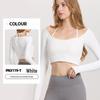 Damen Langarm Yoga Oberteil mit Brustpolster - Neckholder, Bauchnabelfrei, Hochelastische Fitnessbekleidung
