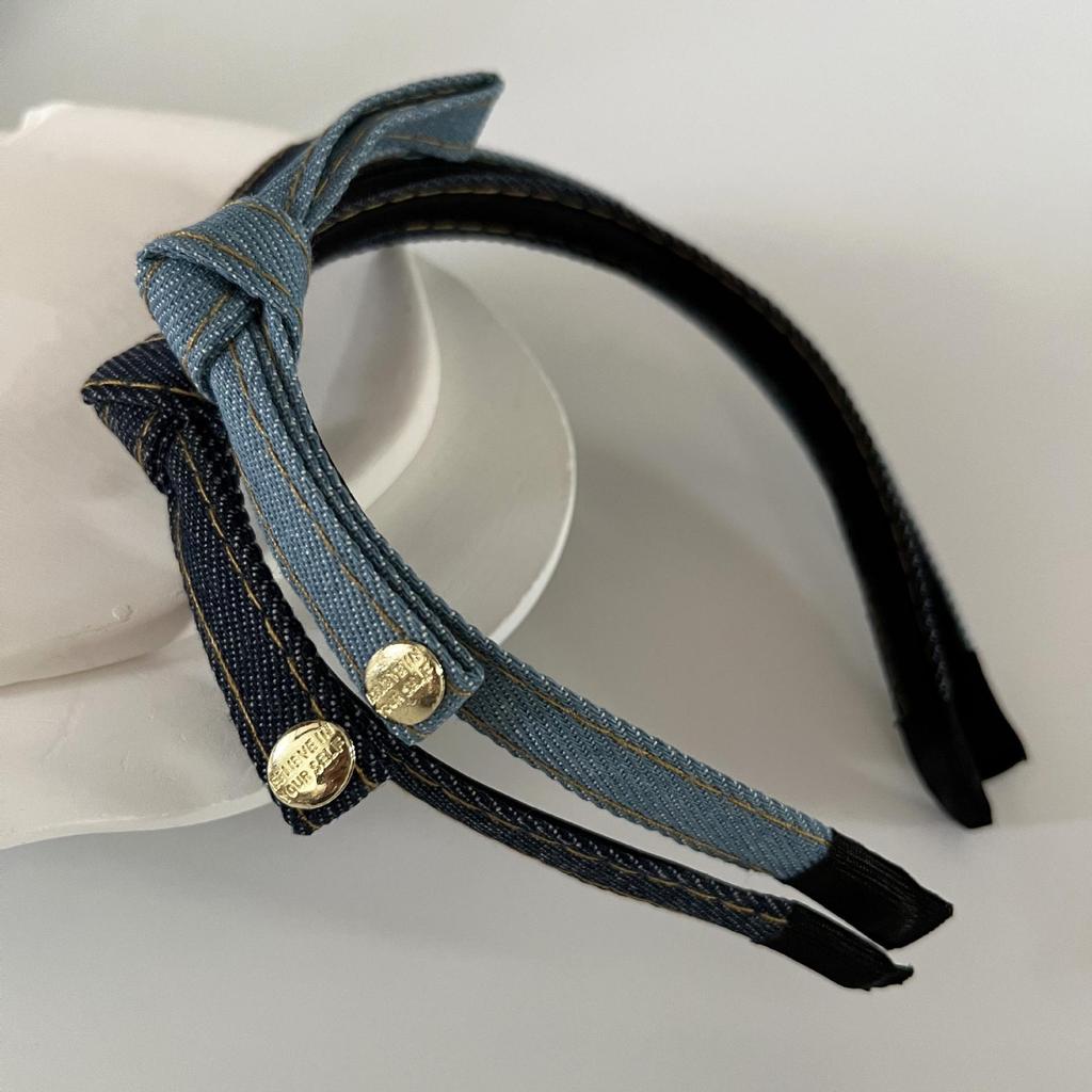 Gold Label Denim Schleifen-Stirnband - Retro, High-End, Schlichtes Stil-Haaraccessoire