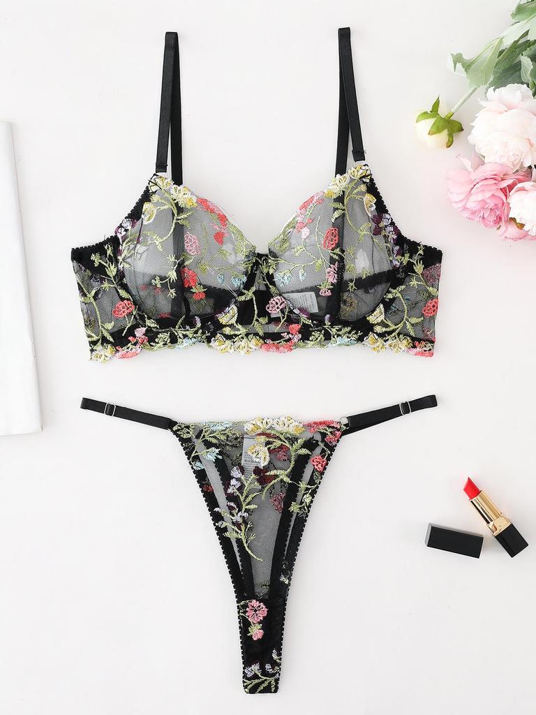"Blumen-Bügel-BH & String-Set - Sexy, minimalistisches Design"