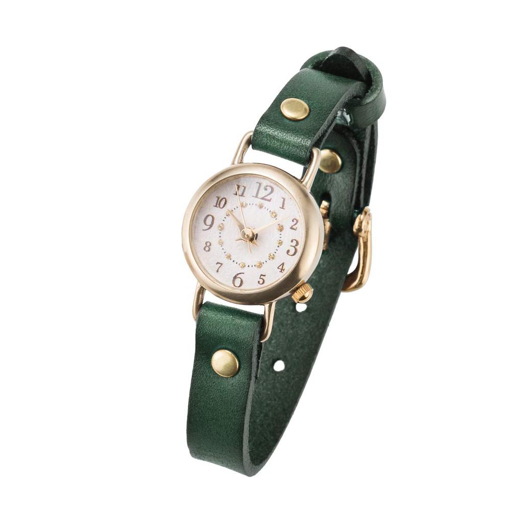 Rebic Damen-Armbanduhr, hergestellt in Japan, Quarz, batteriebetrieben, Lederarmband, Braungold (Grün)