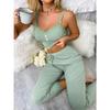 2-teiliges/Set Übergröße Damen Pyjama Studenten Homewear Spitze Camisole Weste Lange Hose Kurzarm Einfarbig Kann Draußen getragen werden