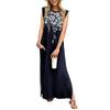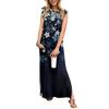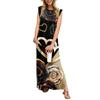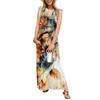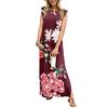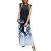 Sommerkleider für Damen, Rundhalsausschnitt, lässig, lockerer Druck, geteilt, faltenfrei, langes Maxi-Strandkleid mit Taschen