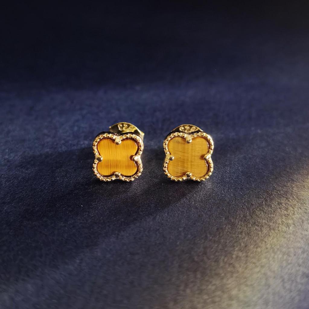 925 Sterlingsilber Vierblatt-Blume Ohrstecker 14K Vergoldet Tigeraugen Ohrringe