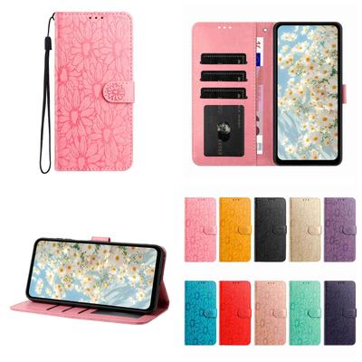 Geprägte Löwenzahn-Handyhülle aus hochwertigem PU-Leder für OPPO A80 A60 A79 A78 A58 A38 A94 A93 Realme C67 C65 C61 C55 C53 C33 C21, Brieftaschenhülle mit 2 Riemen