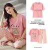 Baumwollpyjama mit Brustpolstern Damen Kurzarm Hose Übergröße Student Loungewear 2-teiliges Set Damen Nachtwäsche Hauskleidung