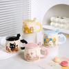 Niedliches kleines Tier mit Deckellöffel, Keramiktasse, Cartoon, hochwertiges Wasserbecher-Set mit großer Kapazität, für Zuhause, Mädchen