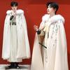 Übergroßer doppelseitiger Hanfu-Umhang aus Wolle für Herren mit abnehmbarem Pelzkragen – dick und warm für den Winter