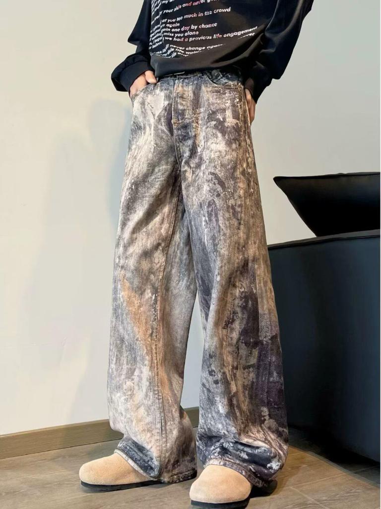 Erleben Sie die perfekte Mischung aus Stil und Komfort mit diesen tief sitzenden, weitbeinigen Denimhosen.. Diese aus hochwertiger Baumwolle gefertigte Hose ist sowohl weich als auch strapazierfähig und sorgt für ganztägigen Tragekomfort.. Mit einem auffälligen 3D-Camouflage- und Tintenklecks-Druck verleihen sie jedem Outfit eine einzigartige Note.. Ideal für sowohl lässige als auch trendige Looks, diese Unisex-Hose ist darauf ausgelegt, ein mutiges modisches Statement zu setzen.