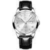OLEVS wasserdichte Business-Armbanduhr aus Leder für beliebte, coole Quarzuhr mit silbernem Zifferblatt für druckfestes Handgelenk, einfach zu lässige Herrenuhr