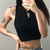 Neuer Sommer Kurzrevers mit einem Knopf Lochgestrickte Ärmellose Weste Einfaches Inside Body Top
