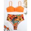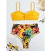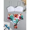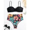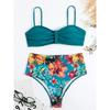 Sexy Solide Bandeau Bikini Set Frauen Tropical Gedruckt Bademode Weiblichen Push-Up Badeanzug Hohe Taille Badeanzug Krawatte Zurück Beachwear