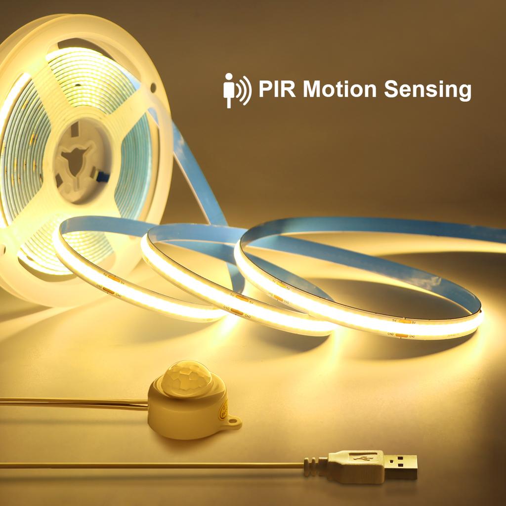 5V USB COB LED Streifenlicht PIR Bewegungssensor 320LEDs/M Flexibles LED Band für Treppe Schrank Küche Nachtlicht 1M 2M 3M 5M