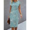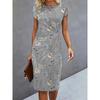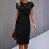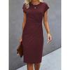 Damen Freizeitkleid mit kurzen Ärmeln Rundhalsausschnitt Enges Knielanges Kleid