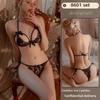 Sex Underwear Sexy Lace Temptation Three-point Bra Underwear Women's Transparent Pajamas Set