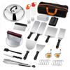【Chef's Choice Grillplatten-Zubehörset】 Mit diesem Grillbesteck-Set mit Grillplattenschaber, Spateln und Ölflaschen können Sie so einfach grillen wie ein Restaurantkoch.. Ideal zum Wenden von Burgern, Pfannkuchen, Gemüse, zum Schneiden von Brot, Fleisch und Wurst, als Schaber und Zerkleinerer zum Würfeln von Lebensmitteln und zum Sauberkratzen von Grillplatten.. Mit dem langen Grillspatel können Sie große Mengen Lebensmittel schnell und präzise bewegen.. Eierringe und Pfefferstreuer für ein besseres Grillerlebnis.