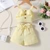 Mädchen Mode Anzug Sommer Kinder Casual Neckholder Top Offene Tasche Shorts mit Gürtel Anzug