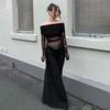 Tooxika Spring And Autumn Women's Fashion One-shoulder Long-sleeved Waist-baring Mesh Splicing Hip Dress