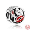 925 Sterlingsilber DIY Schmuck Lippenstift High Heels Liebesherz Hantel Apfel Charm Perle Armband