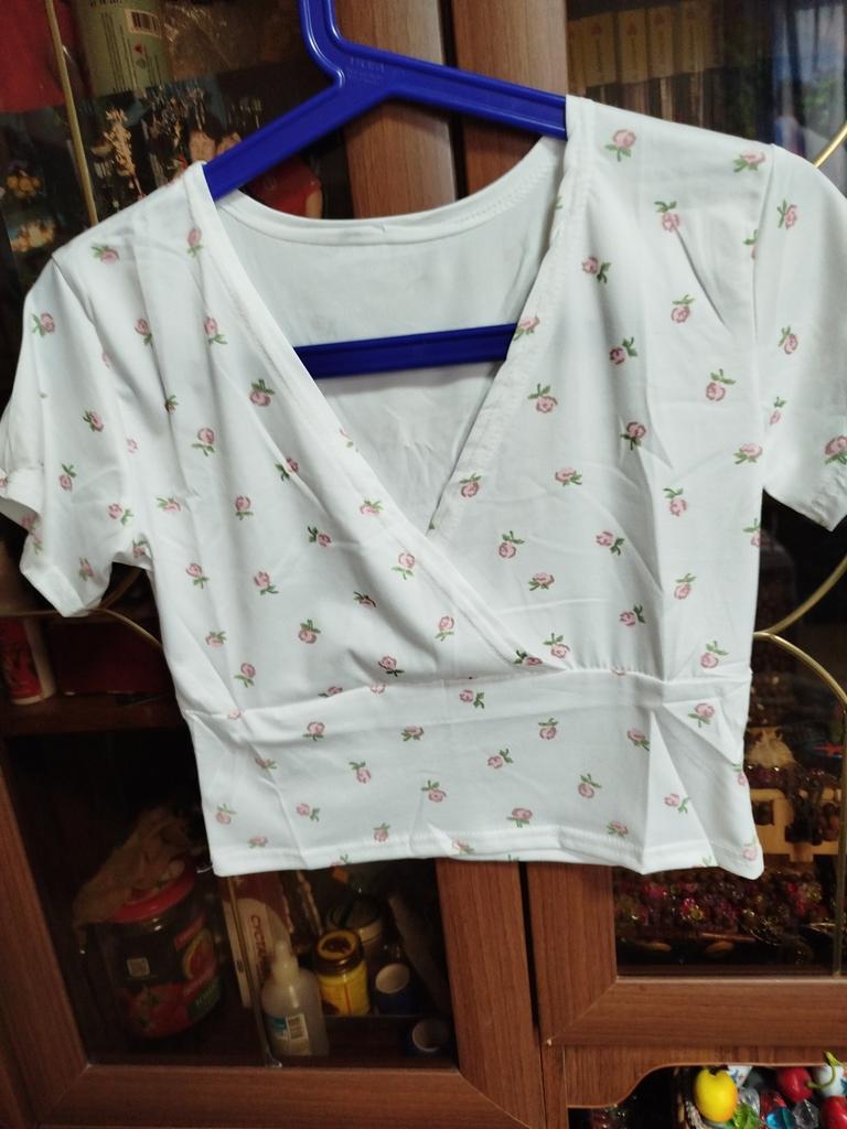 * shirt mit V-Ausschnitt * 💥𝗟𝗶𝗲𝗳𝗲𝗿𝘇𝗲𝗶𝘁 Genau 2 Wochen 💥𝗟𝗶𝗲𝗳𝗲𝗿𝘂𝗺𝗳𝗮𝗻𝗴 Im Lieferumfang enthalten ist 1 shirt in entsprechender Farbe und Größe. Verfügbar ist es in 6 Farben in Größe S bis XXL.l Ich habe das Kleid in Größe L in weiß bestellt. Mir passt es ganz gut👍 Ich habe mich ein wenig an der Zentimeterangabe des Herstellers orientiert. Dieser hat 84 cm beim Brustumfang angegeben. Leider finde ich das Shirt ein bisschen zu weit an der Taille. An der Brust schaut mein BH raus ... es könnte insgesamt ein bisschen enger sein. Normalerweise trage ich Kleidergröße 36 bis 38. Ich bin 172 cm groß. Meine Maße 95-65-95 cm 💥𝗤𝘂𝗮𝗹𝗶𝘁ä𝘁 Das t-shirt ist NICHT durchsichtig . Der Stoff ist sehr weich und perfekt für den Sommer. Der V- Ausschnitt ist extra tief geschnitten. Das T-Shirt ist total elastisch. Die Länge finde ich optimal bei meiner Körpergröße von 172 cm. Es geht mir bis zum Bauchnabel. Zur Materialzusammensetzung : Unbekannt, da ich kein Etikett gefunden habe, aber ich vermute mal Polyester 💥𝗙𝗮𝘇𝗶𝘁 Süßes leichtes Oberteil mit Blümchen mit einem sehr weichen Stoff, dass man super mit einer High Waist Jeans oder high waist Rock tragen kann Größe L fällt wie M aus. ⭐⭐⭐⭐ Wenn euch meine Bewertung sowie Fotos / Bilder bei eurer Kaufentscheidung weitergeholfen haben, würde ich mich freuen, wenn ihr mir hier auf Joom folgt für viele weitere Bewertungen, die noch folgen werden 🏃 📲🙏❤️