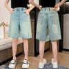 Mädchen-Jeansshorts, Shorts, Sommerdünne, große Kindershorts, Mädchenhosen, Fünfpunkthosen