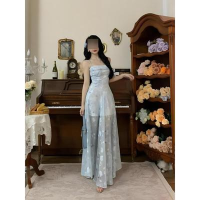 Sommer Damen Sexy Trägerlos Offener Rücken 3D Blume Mesh Club Party Mini Kurze Kleider