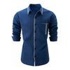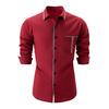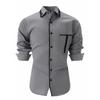 Neue Arbeit Übung Fitness Frühling Langarm V-Ausschnitt Knopf Herren Echte Tasche Casual Top Poloshirt Business Shirt