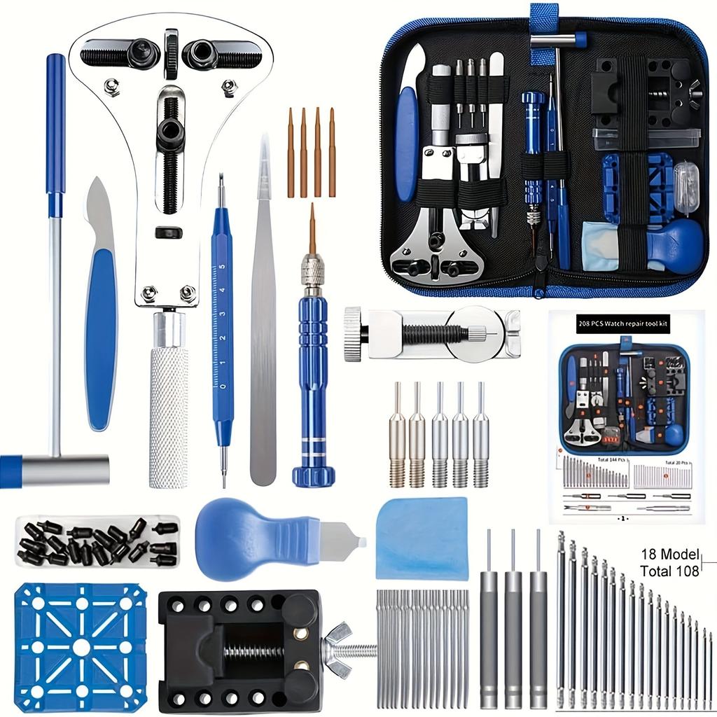 208-teiliges Uhrenreparatur-Werkzeugset, professionelles Uhrenreparaturset, einschließlich Federstab, Bandverbindungslösewerkzeug, Gehäuseöffner, Schraubendreher, Pinzette